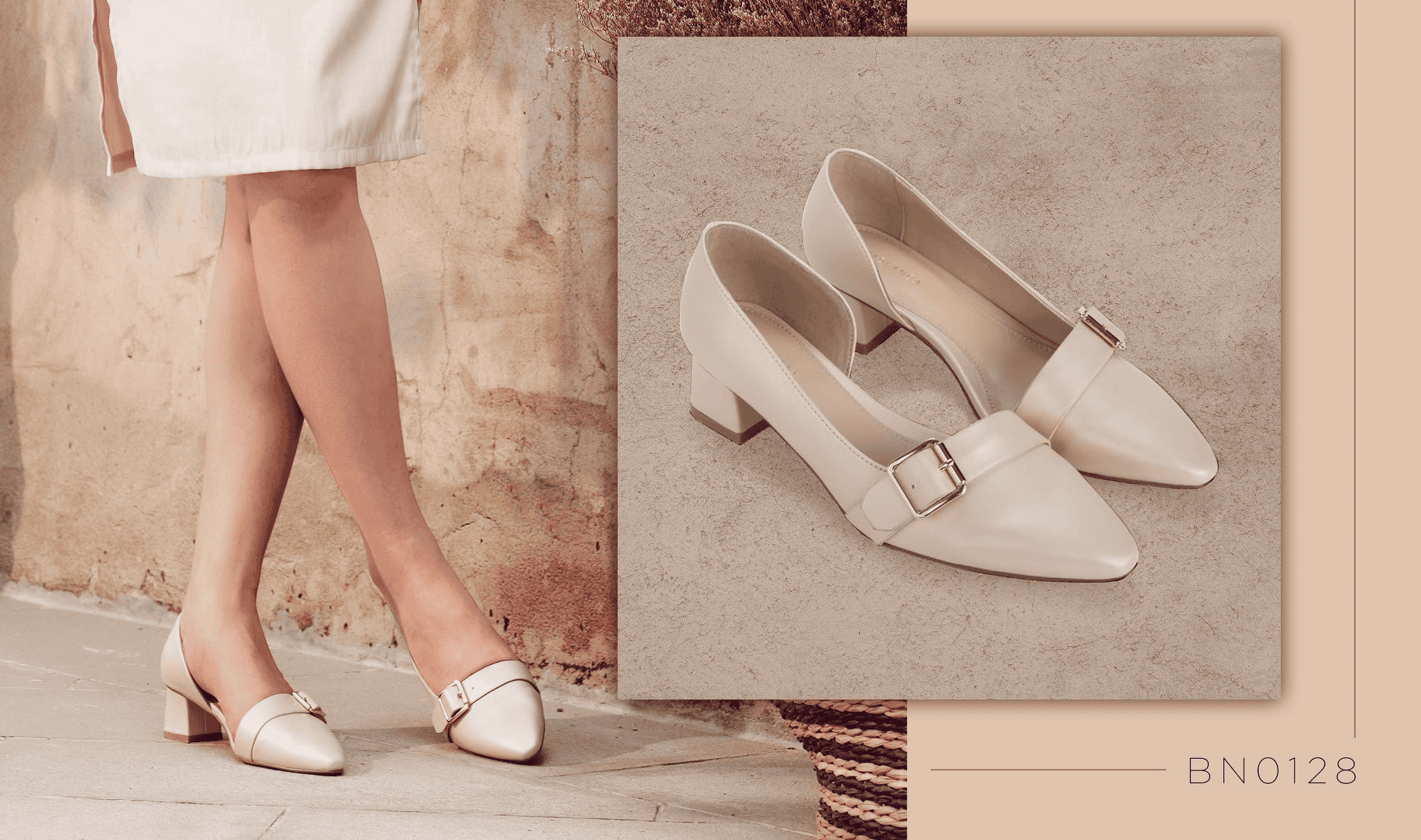 Nhân đôi sự duyên dáng, tô điểm thêm vẻ yêu kiều cho đôi chân nàng bằng đôi cao gót có thiết kế cut - out khoe hờ làn da mịn màng xinh đẹp tạo nên sự quyến rũ khó cưỡng. Mỗi bước chân nàng sẽ là nhịp thở của cuộc sống bởi sự thoải mái đến từ ‘em’ cao gót này.